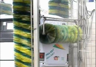 A máquina EBERT L105T lava ônibus e caminhões com segurança e precisão por ser controlada por operador. Proporciona uma operação segura e um sistema muito resistente e confiável. É uma lavadora fixa de 5 escovas giratórias que efetuam a lavagem com o veículo passando pelo equipamento. Sua atuação é controlada por operador que acompanha o movimento do veículo durante todo o processo de lavagem. Dotada de escovas que giram em contra-rotação ao sentido de passagem do veículo o que qualifica a lavagem de frisos e portas.